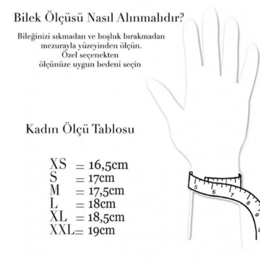 Bileklik ölçüsü, sipariş sonrası müşteriden alınarak kişiye özel hazırlanır.