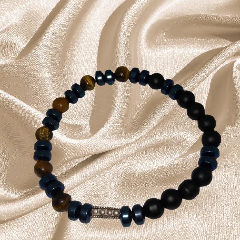 Hematit, Kaplangözü ve Yıldız Taşı’nın bir araya geldiği bu özel tasarım bileklik, modern yaşamın hızına ayak uydurmanıza yardımcı olurken tarzınıza da şıklık katar.