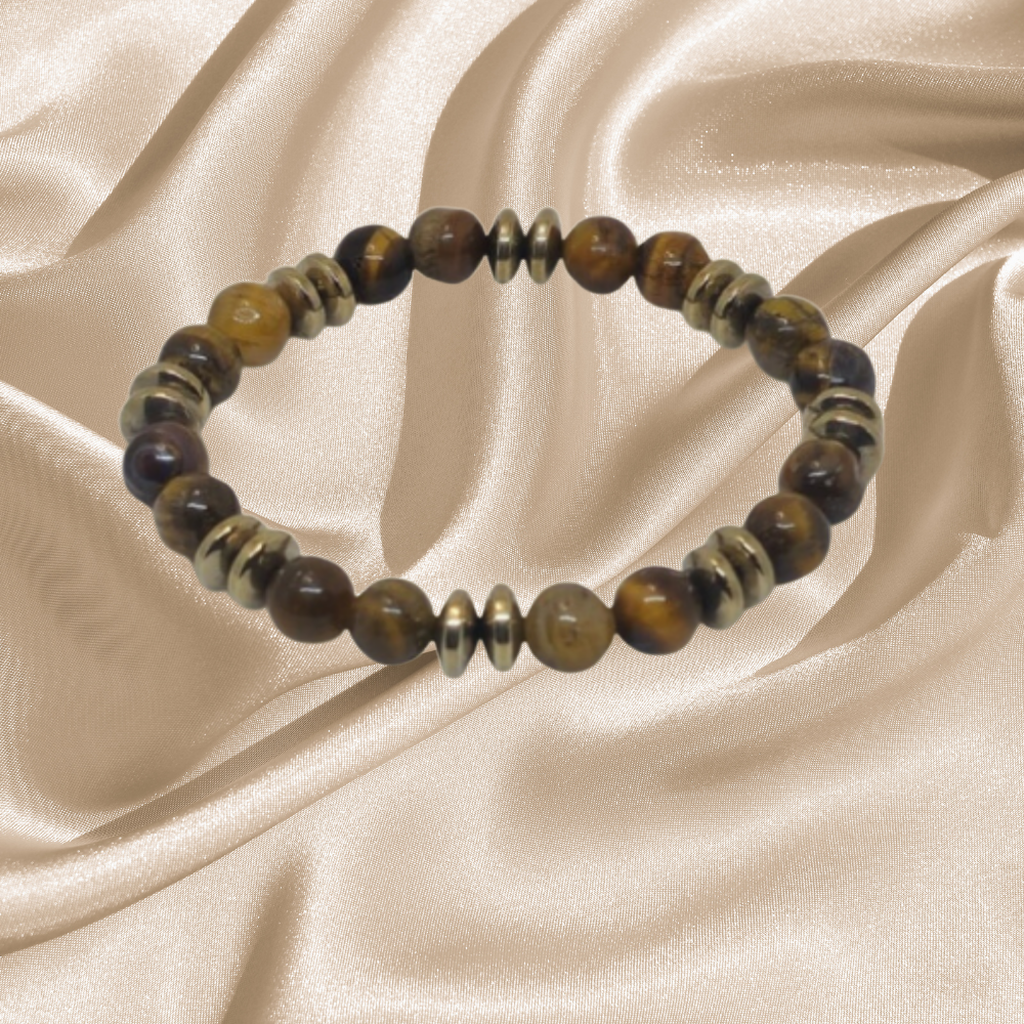 Şıklık ve doğallığı bir arada sunan bu hematit taşlı bileklik, altın tonlarındaki metal ara detaylarla tamamlanmış özel bir aksesuardır. Günlük kombinlerde hem erkek hem kadın kullanıcılar için kolayca uyum sağlayan bu bileklik, sade ama dikkat çekici bir stil sunar.