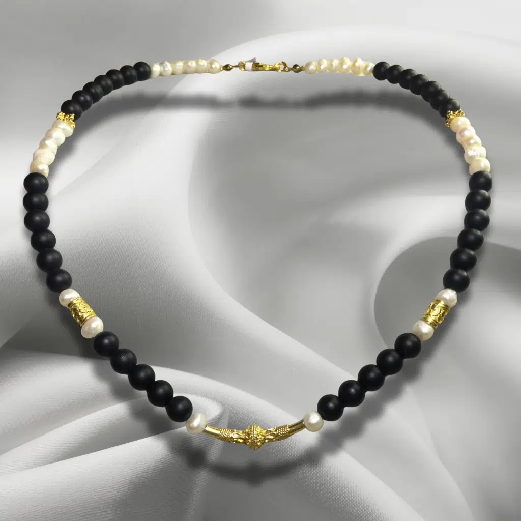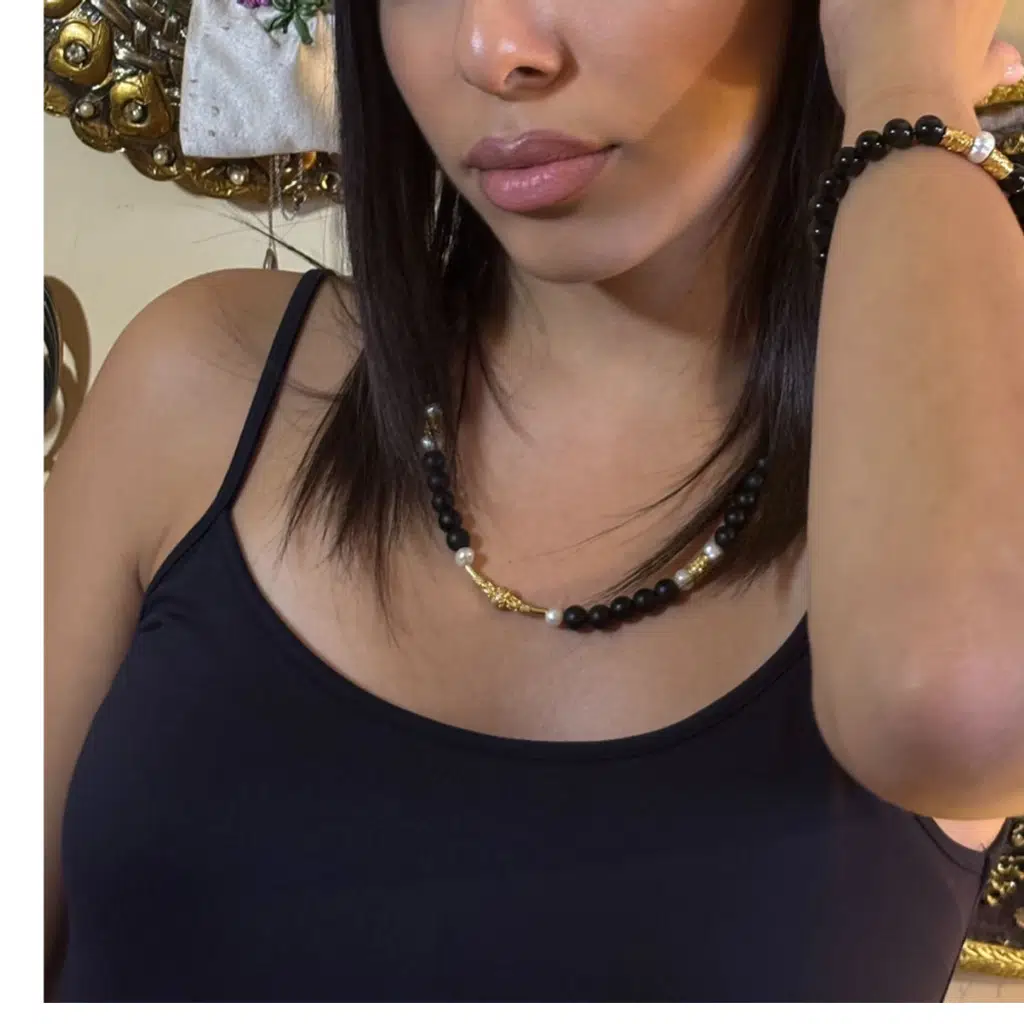 Reina Del Corazen El Yapımı Doğal İNCİ ONİKS Antik Gümüş Kolye – Otantik Tasarım, Tarihî İlhamlı, Bolluk ve Huzur Enerjili Şık Takı