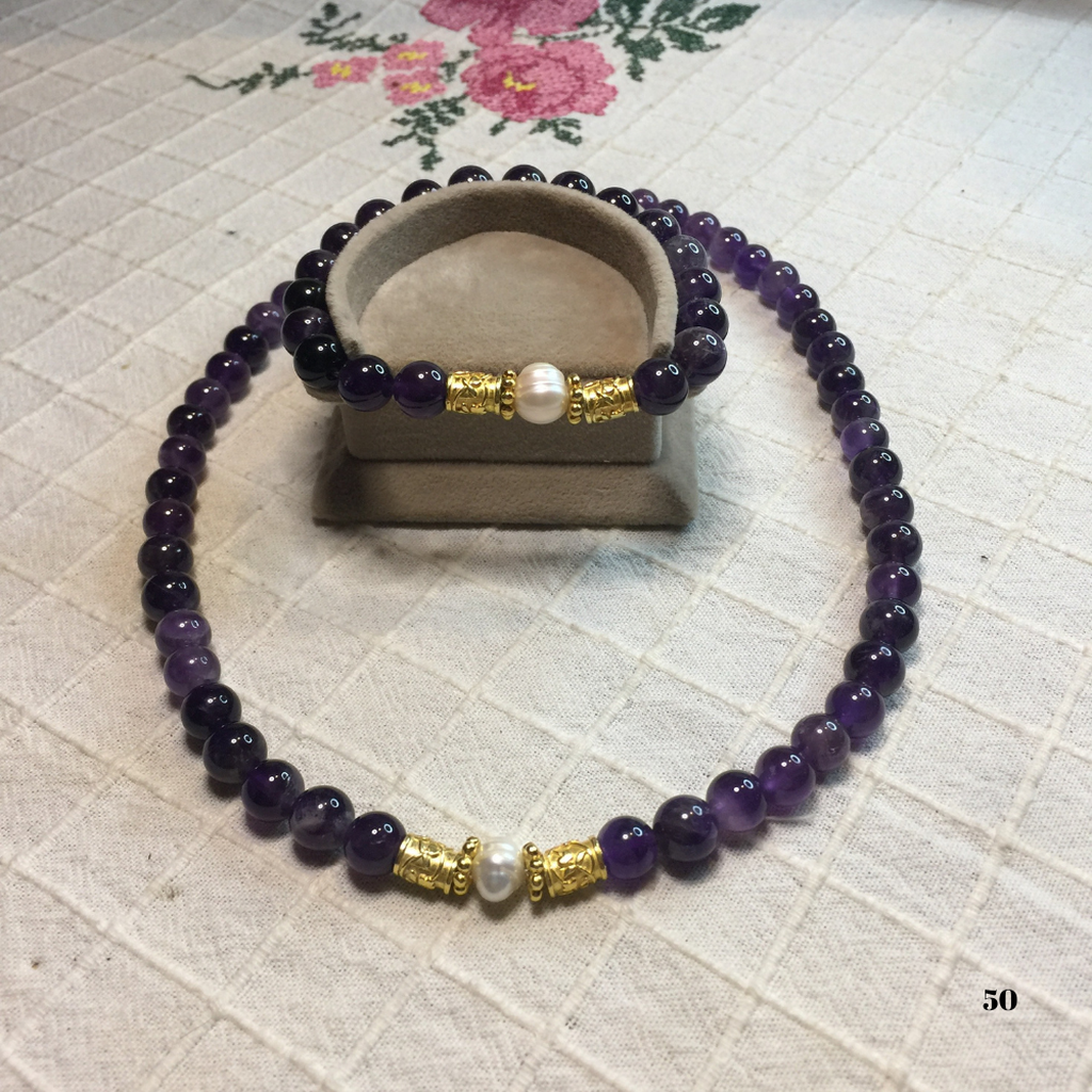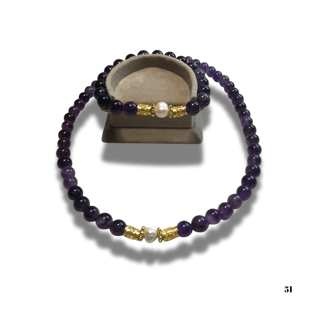 Reina del Corazen Ametist, Gerçek İnci ve 925 Ayar altın kaplamaGümüş Kolye & Bileklik Seti – 2500 Yıllık Takı Geleneği |