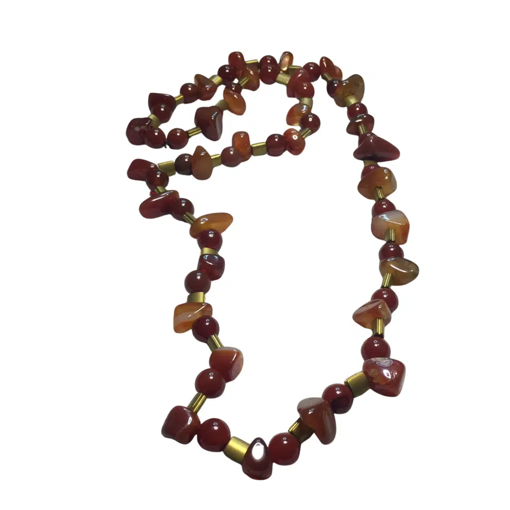 Sade ve dengeli tasarımıyla hem kadınlar hem erkekler için uygun, zamansız bir doğal taş kolyedir.