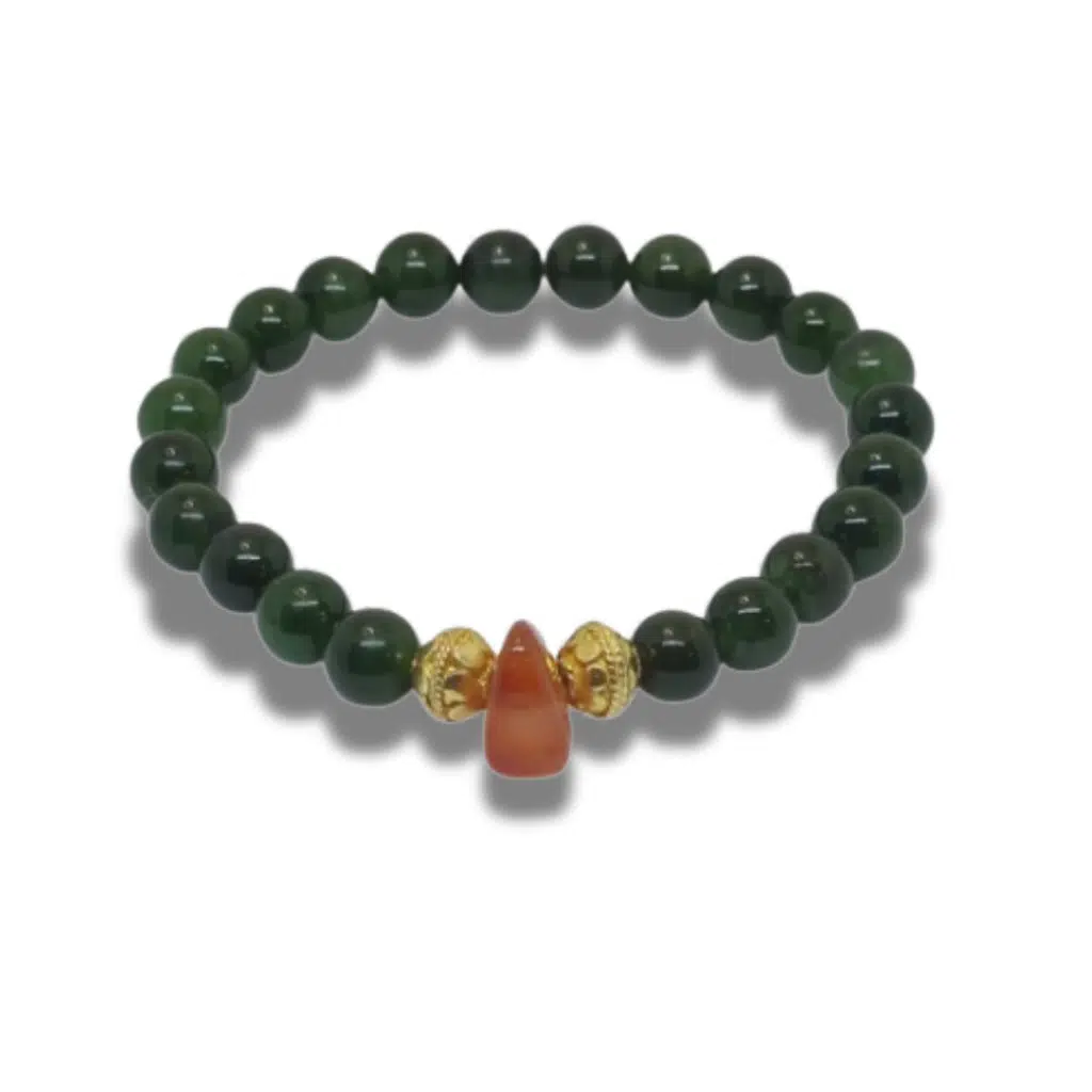 Yeşil akik taşının sakinleştirici enerjisi ile gümüşün parlak dokusu bir araya gelerek hem estetik hem ruhsal olarak dengeli bir aksesuar ortaya çıkarır.