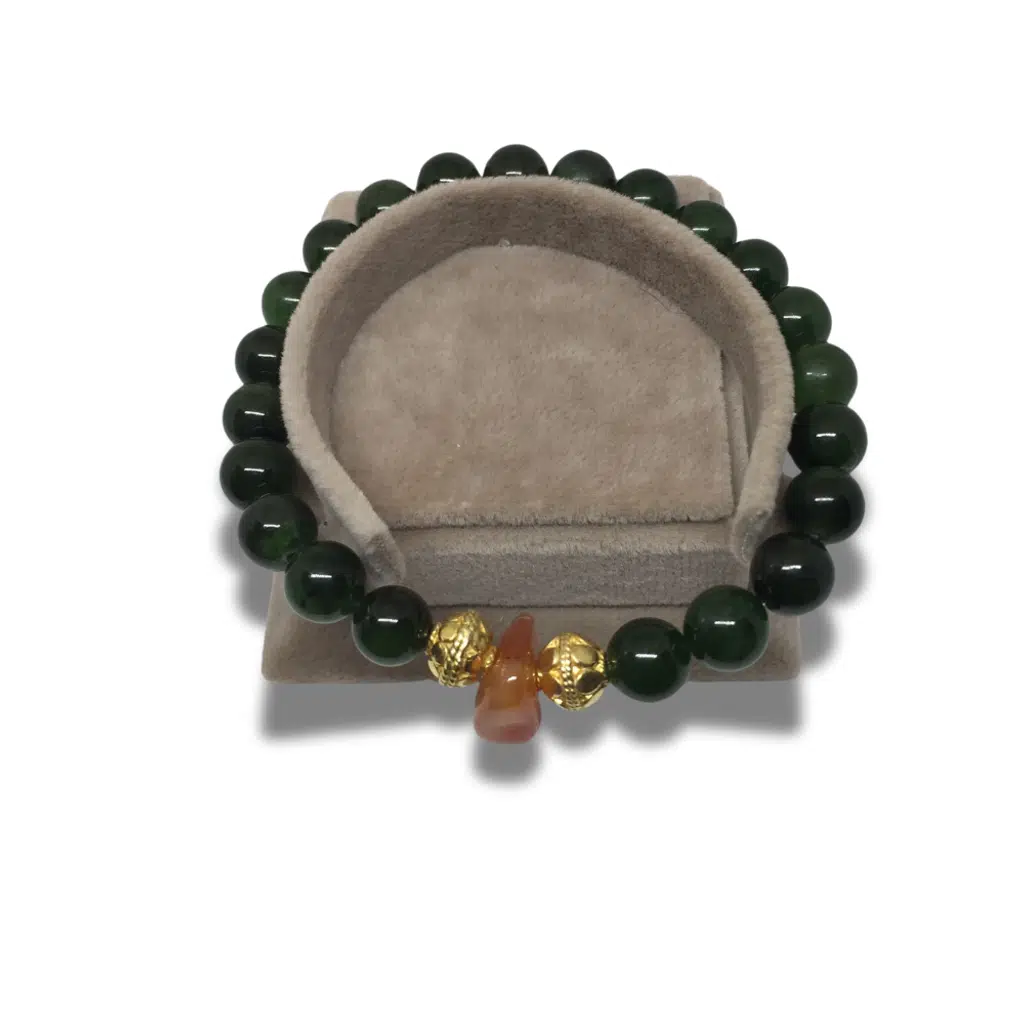 Reina Del Corazen Doğaltaş Bileklik, doğal yeşil akik taşının güçlü enerjisini 925 ayar gümüş detayların zarif ışıltısıyla buluşturan özel bir tasarımdır. Şıklığı, doğal taşın ruhsal enerjisi ve değerli metalin kalitesiyle birleştirerek hem günlük kullanımda hem özel günlerde etkileyici bir görünüm sunar.