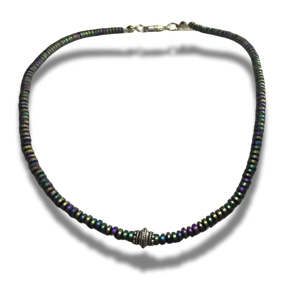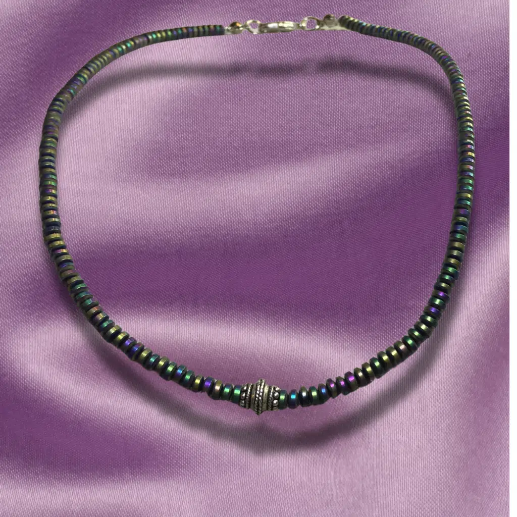 Reina Del Corazen El Yapımı Doğal Hematit Antik Gümüş Kolye, hematitin güçlü enerji dengeleme özelliğini antik gümüş detayların zarif ışıltısıyla birleştiren özel bir tasarımdır. Tarihî esintilere sahip bu kolye, hem ruhsal koruma hem de modern bir şıklık sunar. ✨ El Yapımı & Özgün Parça: El işçiliğiyle üretilen her kolye kendine özgüdür. Hematit taşının metalik yansımaları, antik gümüşün estetiğiyle kusursuz bir uyum yakalar. ? Doğal Hematit Taşı: Yüzyıllardır koruma, topraklanma, dayanıklılık, zihinsel netlik ve enerji dengesi taşı olarak bilinir. Negatif etkileri uzaklaştırır ve odaklanmayı artırır. ? Antik Gümüş Detaylar: Tasarıma vintage bir hava katan bu detaylar, hematitin güçlü enerjisini daha görünür ve estetik kılar. ? Antik İlhamlı Otantik Tasarım: Geçmiş uygarlıklardan alınan ilhamla modern çizgilerin birleştiği şık, zamansız bir kolyedir. Günlük ve özel kombinlere rahatlıkla uyum sağlar. ? Bolluk & Huzur Enerjisi: Hematit, zihni sakinleştirirken gümüş detaylar ruhsal akışı destekleyerek kullanıcıya huzurlu ve dengeli bir enerji alanı oluşturur. ? Unisex & Şık: Hem kadın hem erkek kullanımına uygun, sade ama güçlü bir doğal taş aksesuarıdır. Kullanım Alanları Günlük kombinlere sofistike bir doğal taş dokunuşu eklemek Sevdiklere koruyucu ve enerjisi yüksek bir hediye sunmak Meditasyon, odaklanma ve topraklanma çalışmalarında destek almak Hem modern hem klasik tarzlarla uyumlu bir tamamlayıcı aksesuar olarak kullanmak
