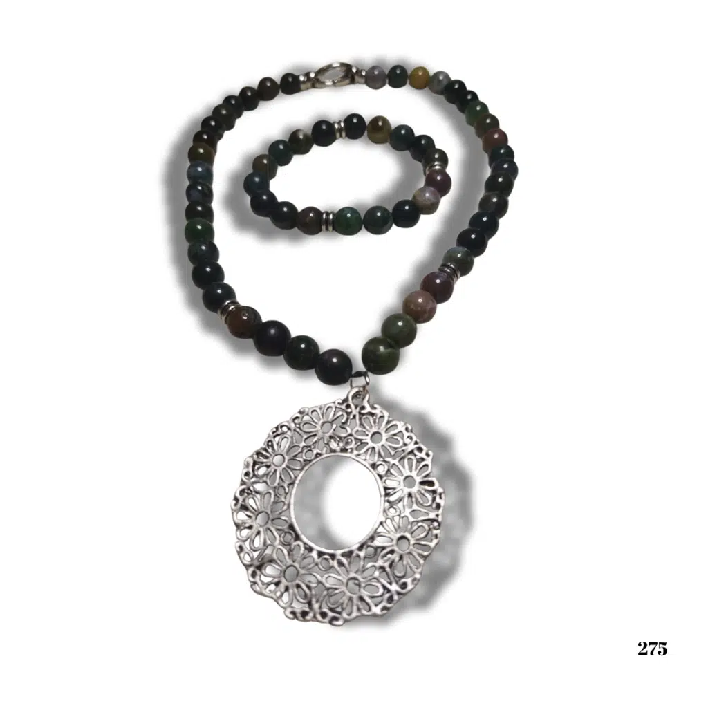 Reina del Corazen El Yapımı Doğal Hint Akik VE YEŞİM TAŞI Taşı Antik Kolye VE BİLEZİK – Otantik Tasarım, Tarihî İlhamlı, Bolluk ve Huzur Enerjili Şık Takı
