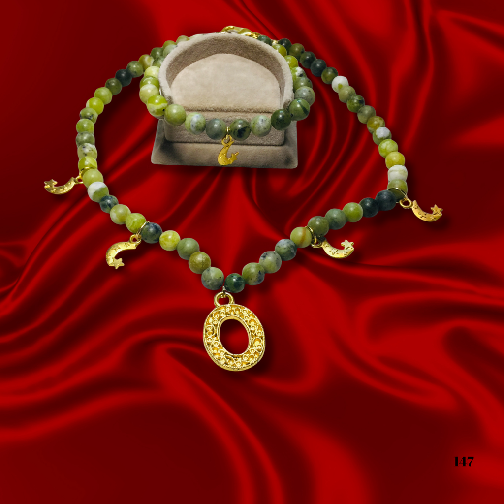 Reina del Corazen El Yapımı Doğal Yeşim Taşı Antik Kolye ve Bileklik – Otantik Tasarım, Tarihî İlhamlı, Bolluk ve Huzur Enerjili Şık Takı