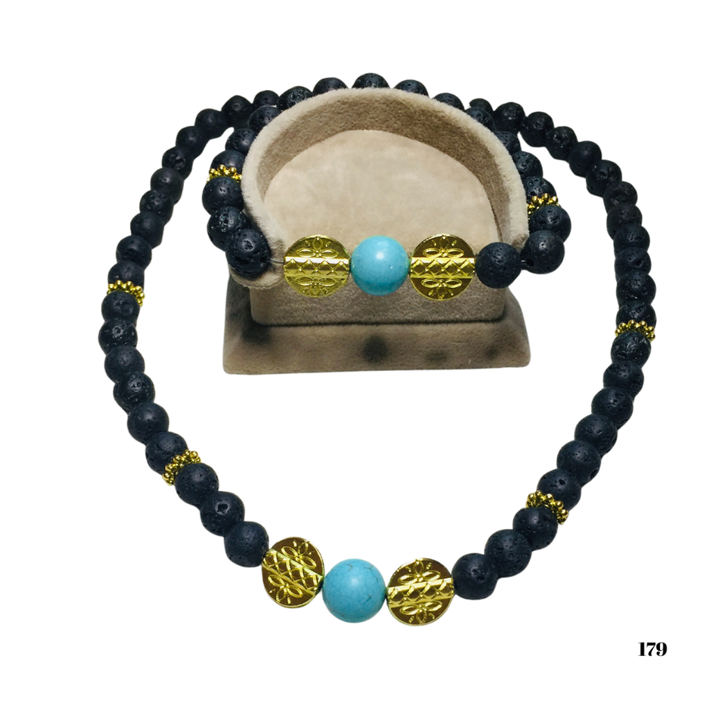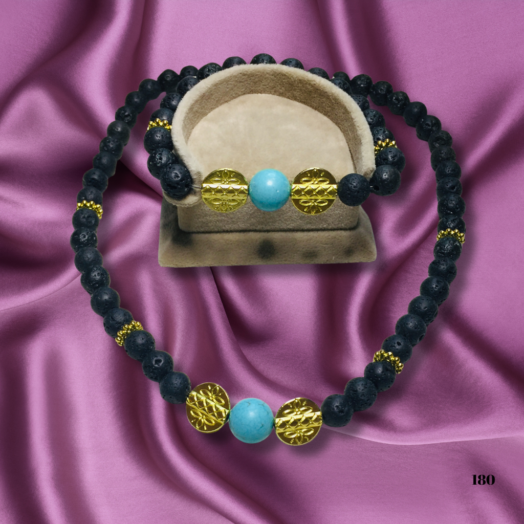Reina del Corazen El Yapımı Mistik Lav Taşı ve Turkuaz Antik Kolye ve Bileklik, volkanik lav taşının güçlü enerjisi ile turkuazın huzur verici şifasını buluşturan özel bir tasarımdır. Tarihî esintileriyle zarif, enerjisiyle dengeleyici bir aksesuardır.